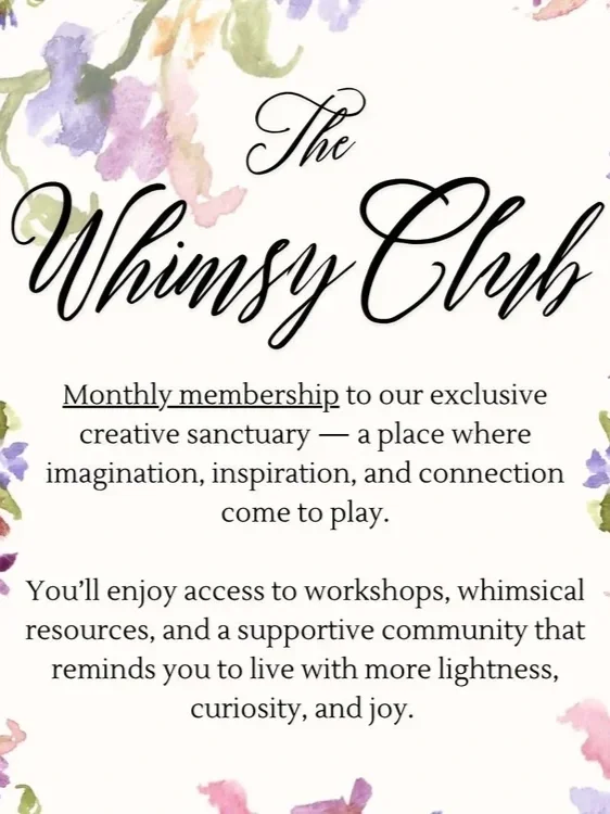 Join the Whimsy Club — your creative playground for joy, inspiration, and connection. Explore workshops, journal prompts, and community gatherings that remind you you’re never too grown-up to play.